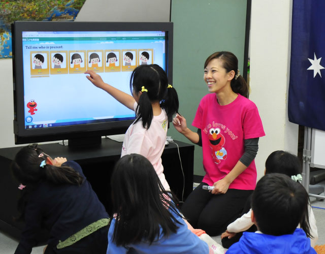 幼児・小学生には「東進こども英語塾」のカリキュラムにて、オール・イングリッシュで指導します。年に一度行われる東進本部からの研修も充実していて、他の教室の先生とも情報交換をする機会もあります。